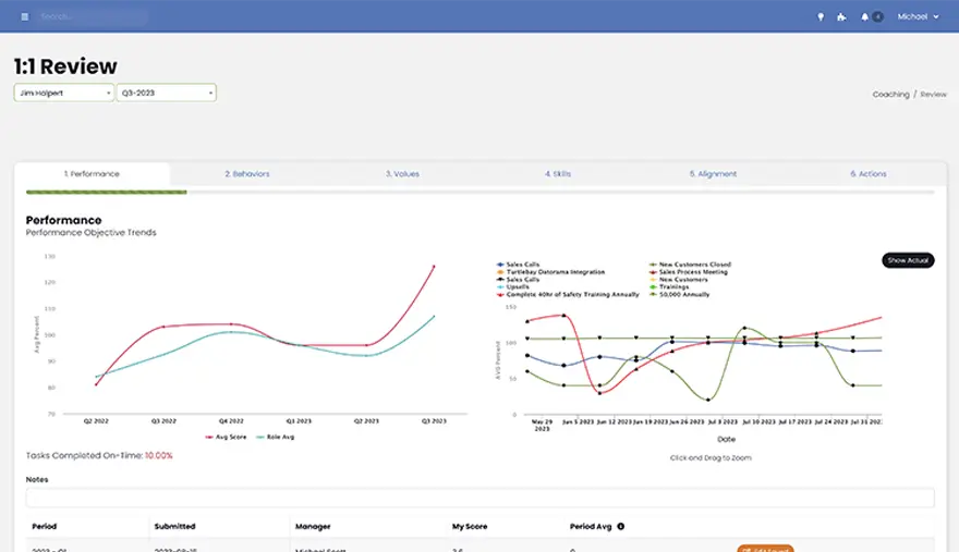 Use team views to review individuals, access past reviews, and track progress over time, so feedback is grounded in data, not guesswork.