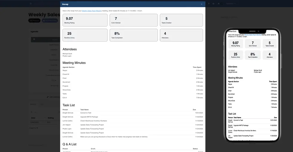 Wrap-up emails include task outcomes and owners, so follow-through isn’t a mystery; it’s on-record and searchable.