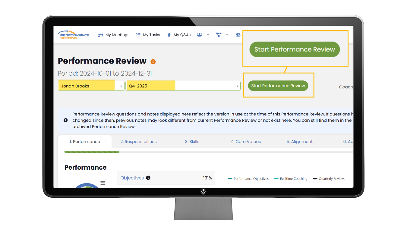 - Click Start Performance Review