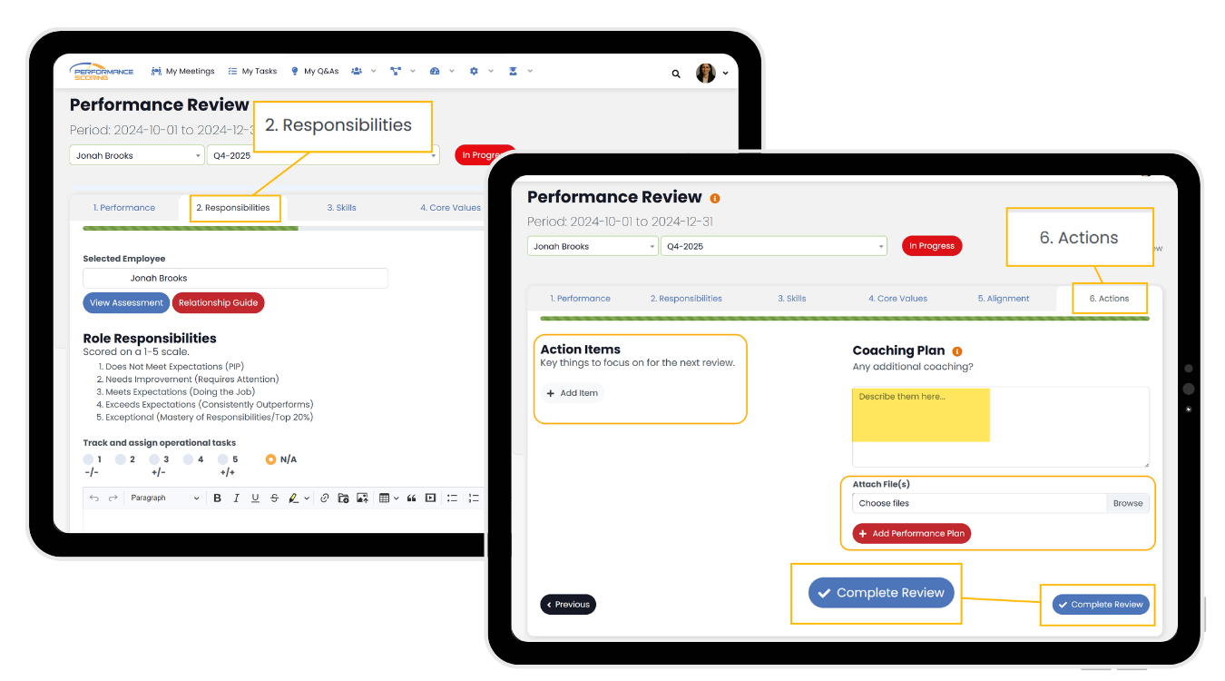 Performance Scoring is designed to make reviews collaborative — not one-sided.