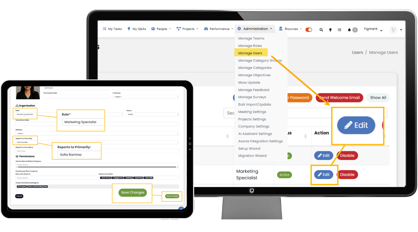Navigate to Manage Users, select the user you want to update, and click their name or the edit icon.