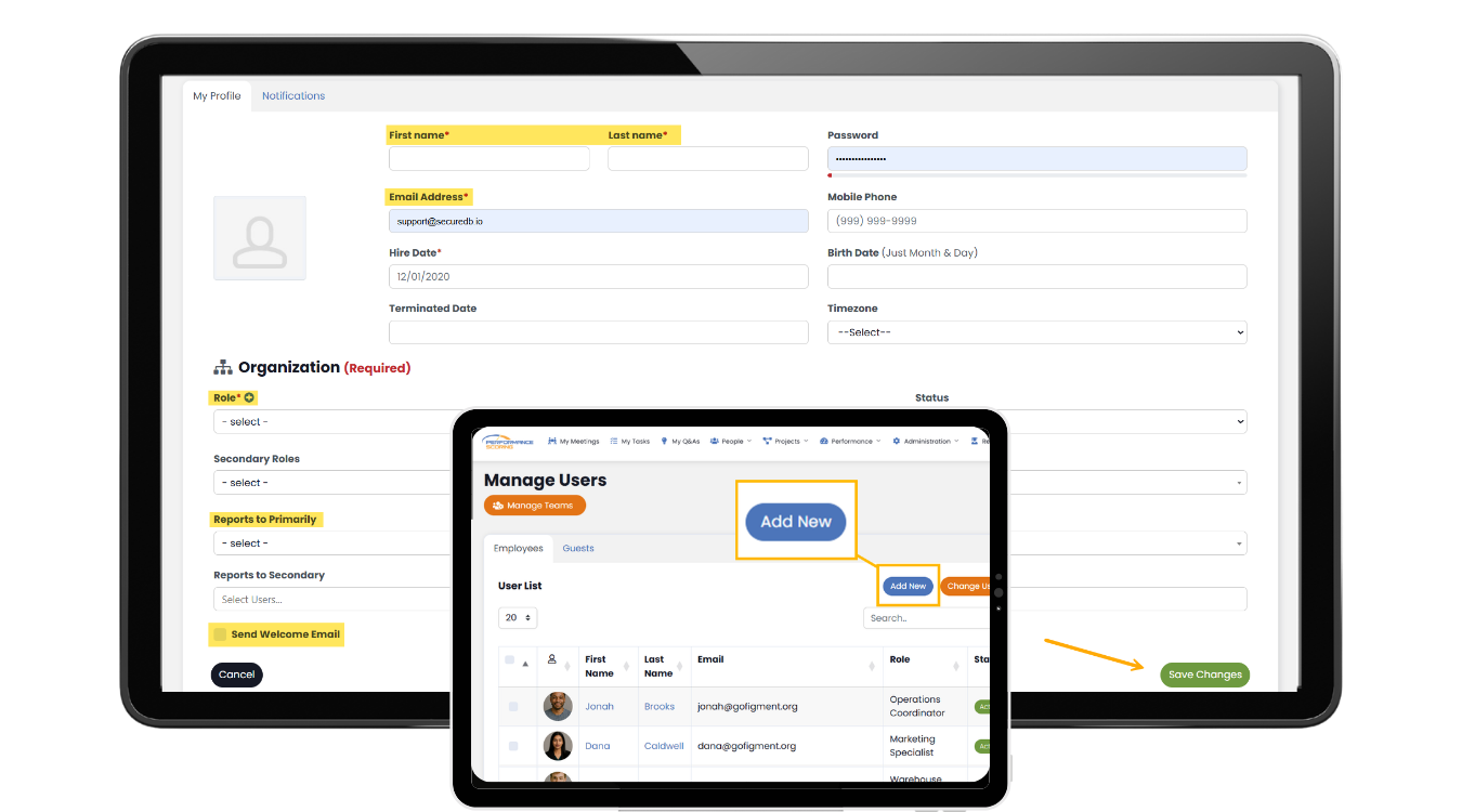 The Manage Users tab is where you manage the people in your organization inside Performance Scoring. This is where you add new users, update their information, and make sure they’re assigned the correct role and department. You can also set who they report to, which helps keep the Accountability Chart™ accurate.
