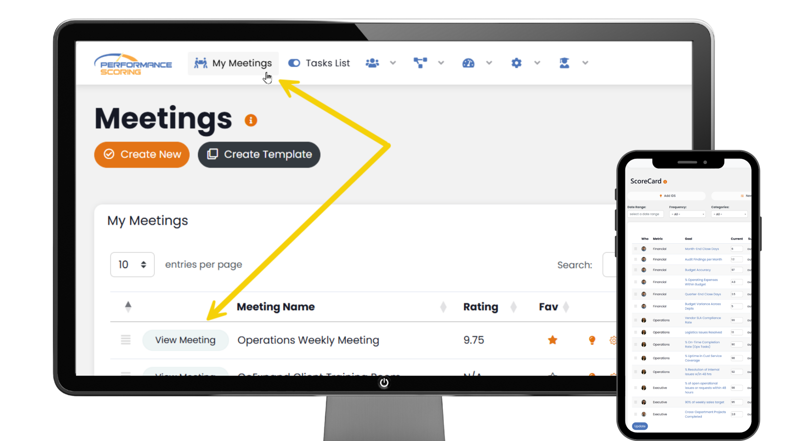 Navigate: Meetings → View Meeting → Scorecard