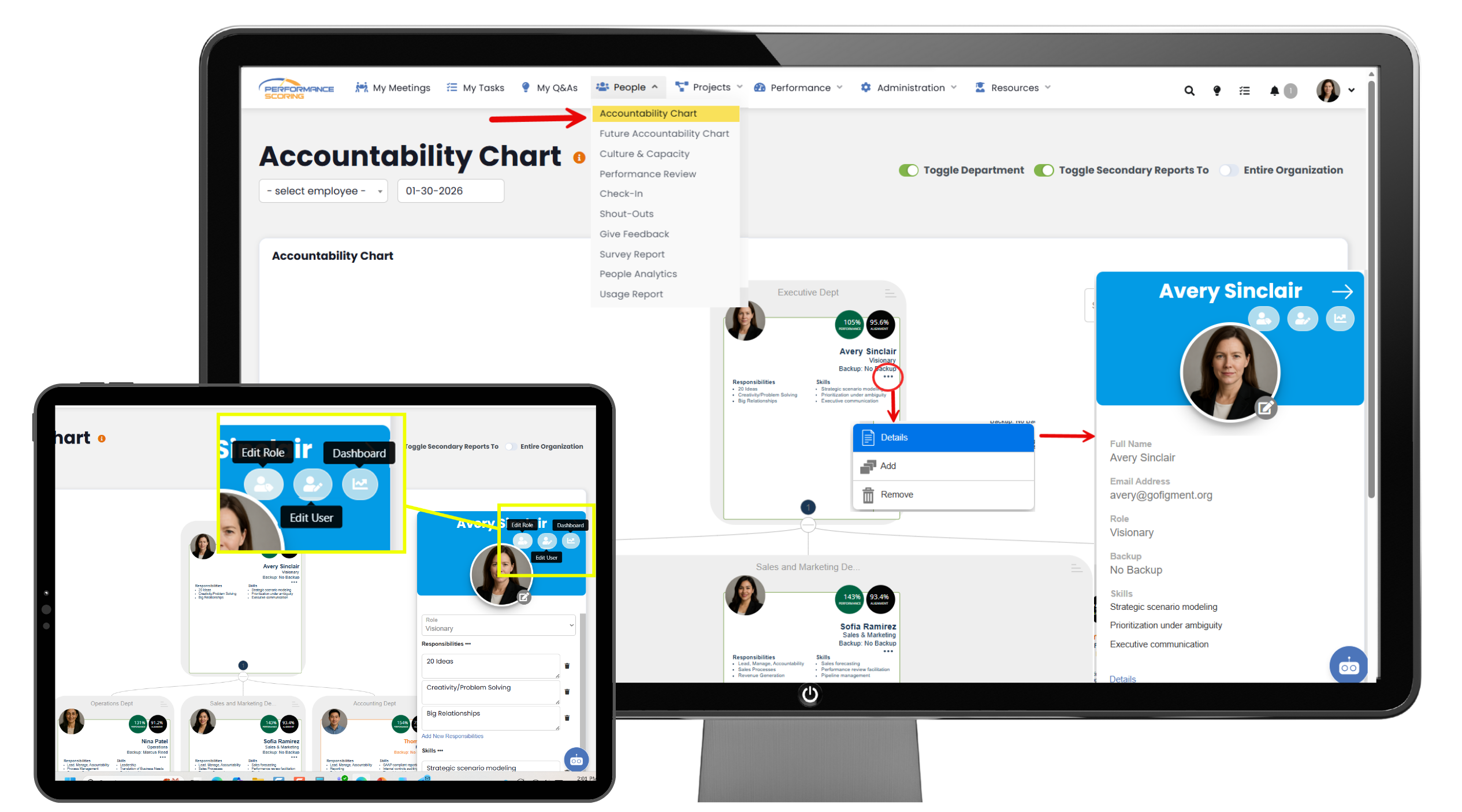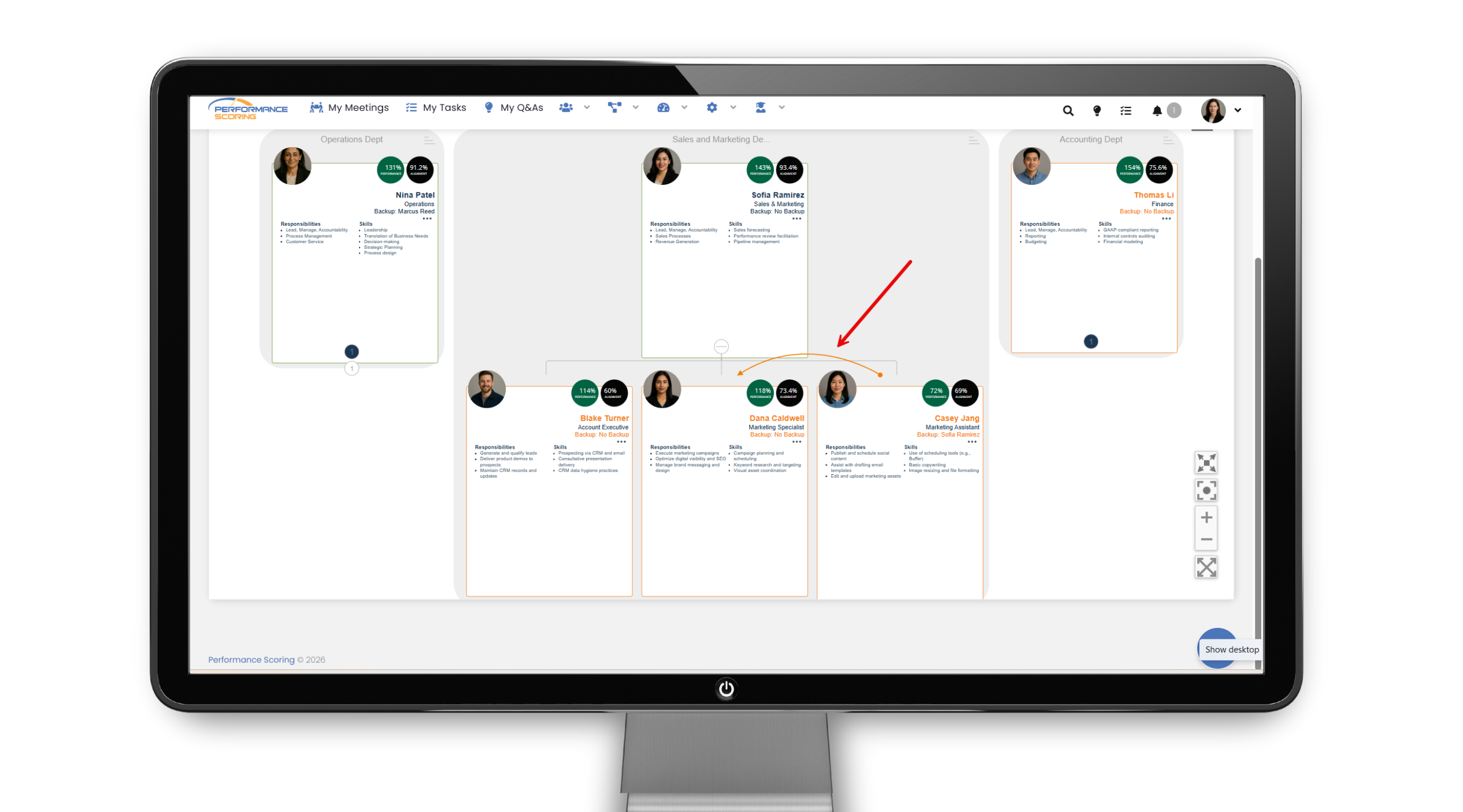 The Accountability Chart in Performance Scoring shows how work is owned and organized across the organization. It clearly defines roles, responsibilities, and reporting structure so everyone knows who is accountable for what. This helps reduce confusion, improve alignment, and support stronger execution.