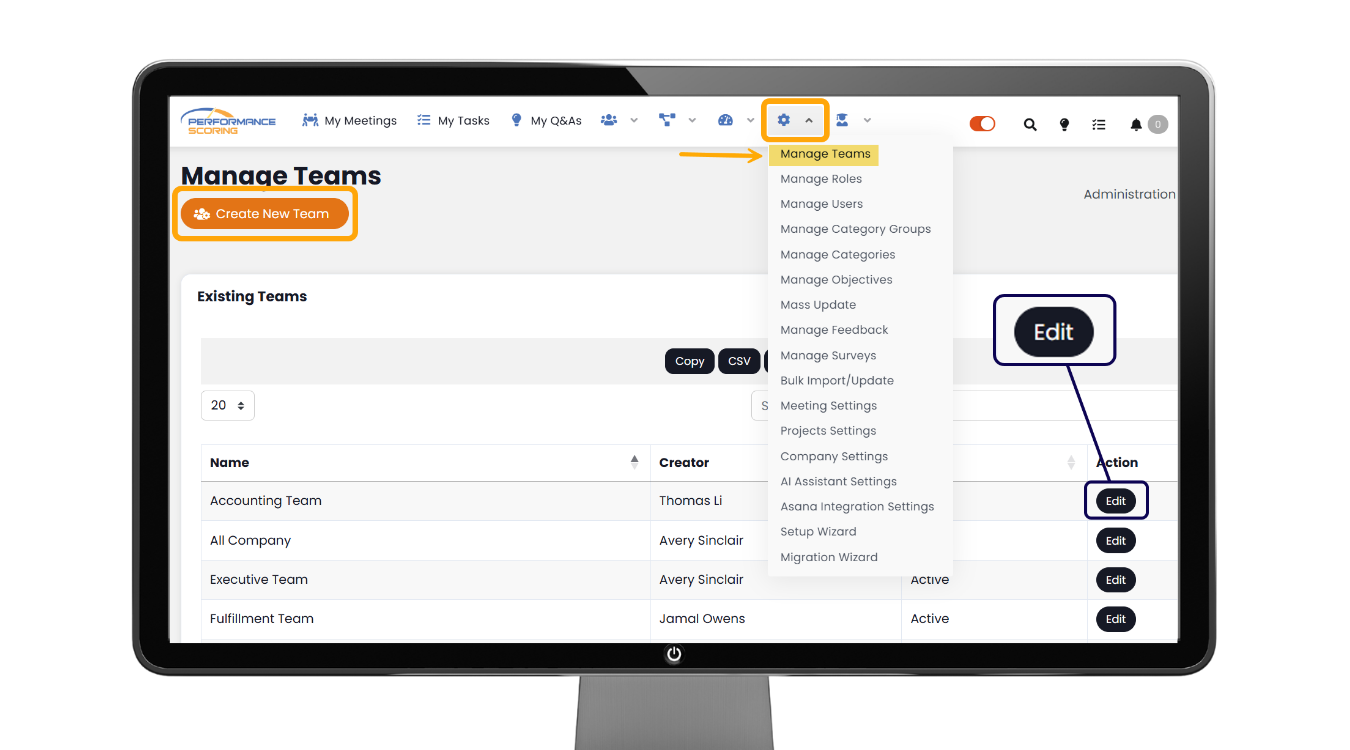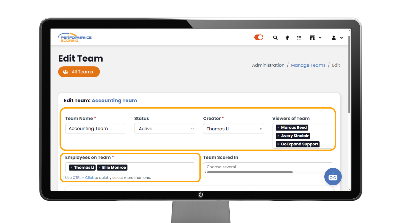 This guide walks through how to edit and manage Teams inside Performance Scoring.