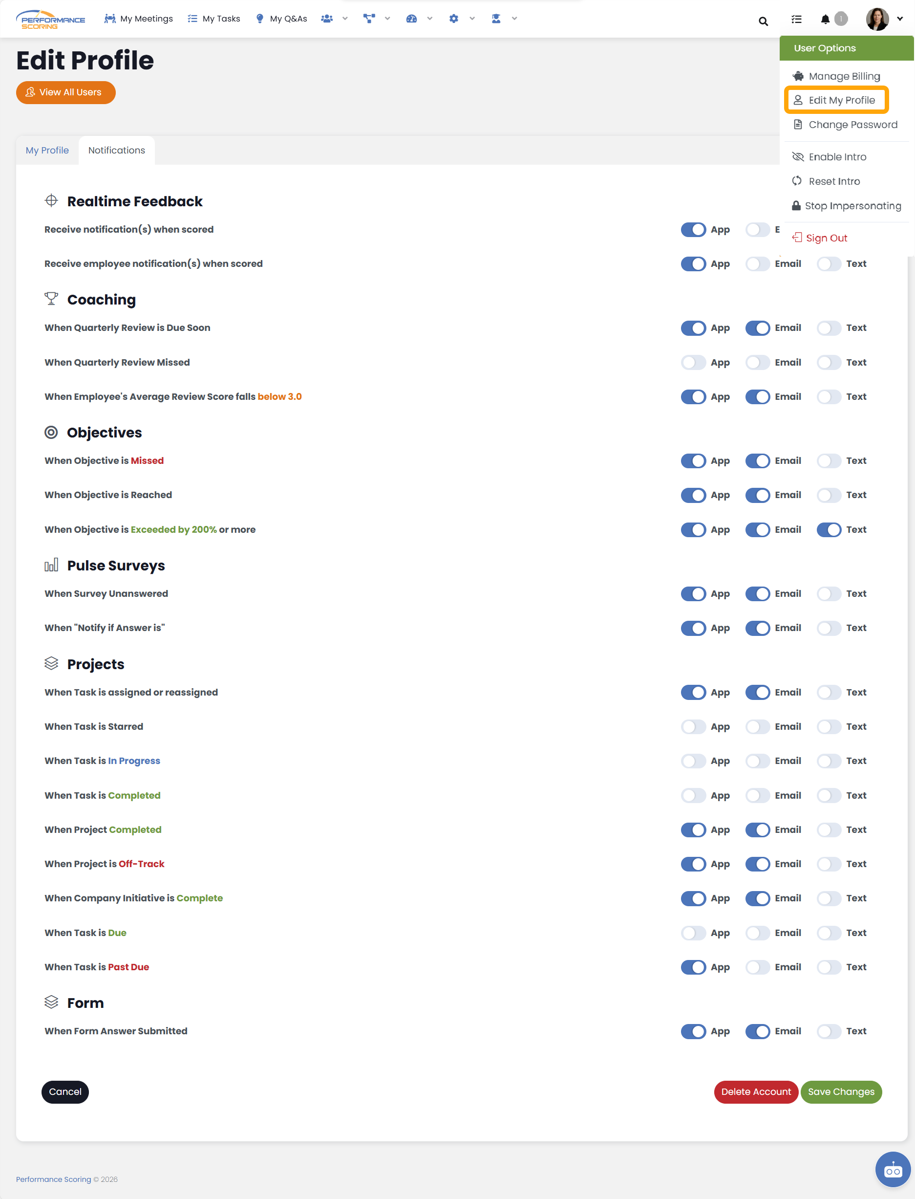 Performance Scoring sends notifications to keep you aligned and accountable.