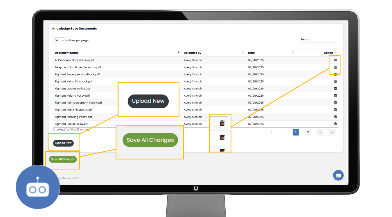 Keeping documents current is critical to maintaining accurate AI responses. When a policy or procedure changes, the best practice is to delete the outdated document first, then upload the revised version. This prevents conflicting information and ensures the AI references only the most up-to-date material.