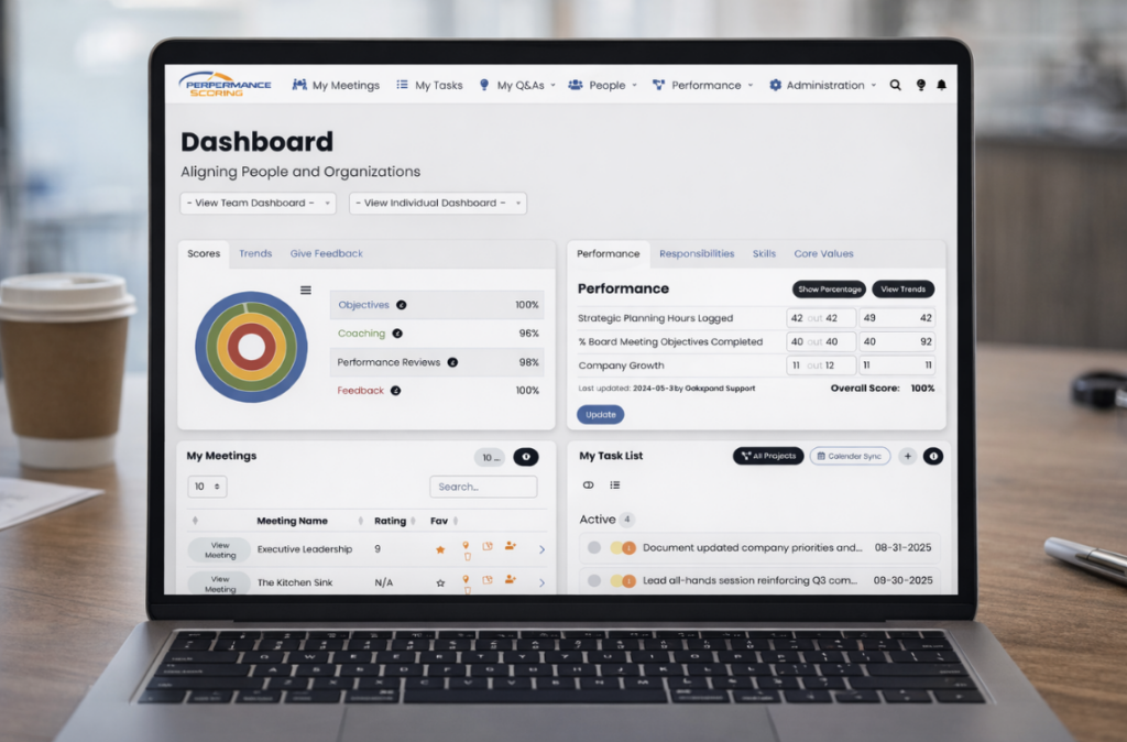 Performance Scoring brings together performance management, operational dashboards, and meeting-driven leadership tools into one unified platform designed to keep your teams aligned and performing at their best.